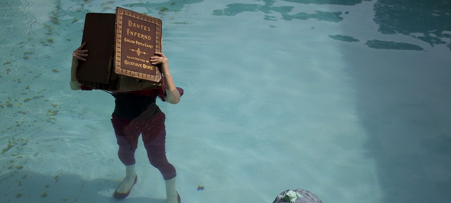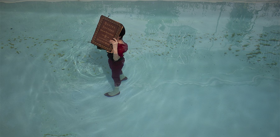 En otra serie de fotografías realizadas en 2010-13, Eugenia Vargas-Pereira se sumerge vestida en una gran piscina de la ciudad de Miami. Hace de esta experiencia una inmersión placentera, no obstante, a partir del libro de Dante, la artista realiza una sutil crítica ambiental acerca del sobreconsumo y las disyuntivas de un paraíso o infierno terrenal.