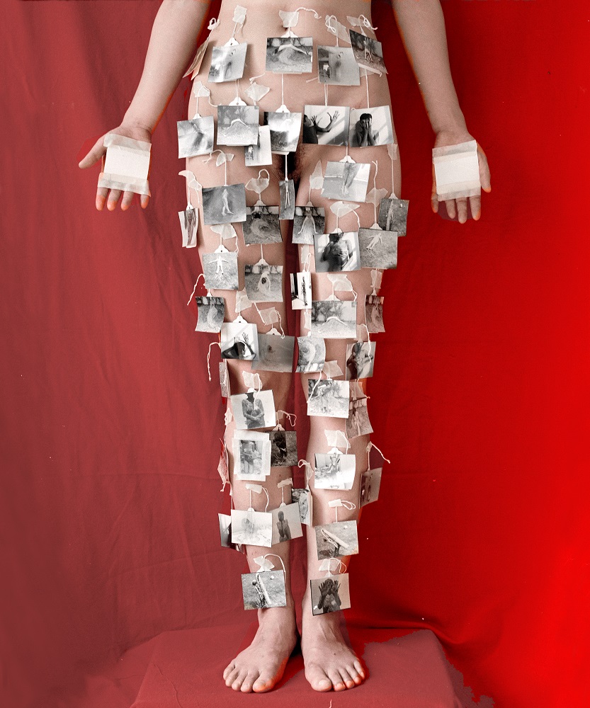 A partir de los años 70, Eugenia Vargas-Pereira emprende una larga producción de imágenes que sitúan su propio cuerpo como centro extendido de memorias y vivencias. Su prolífico trabajo en fotoperformance e instalación, posiciona como eje central el cuerpo feminista, en constante movimiento, conexión y simbiosis con otras materialidades, elementos y especies.